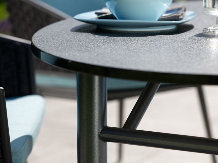 Granit ist ein sehr widerstandsfähiges und witterungsbeständiges Material, somit auch für den Aussenbereich bestens geeignet. Trotz seiner Dichte können durch scharfe Gegenstände Kratzer oder Gebrauchsspuren entstehen. Die Tischoberflächen sind in den Verarbeitungen roh, gebürstet und poliert erhältlich. Im Gegensatz zu polierten, benötigen rohe und gebürstete Oberflächen generell mehr Pflege. Werkseitig werden die meisten Granitflächen mit einer Imprägnierung behandelt, sodass eine Fleckenbildung vermindert wird. Um den vollen Charakter der Oberfläche von Nero Assoluto zu betonen, wird diese zusätzlich mit einer Farbvertiefung behandelt. Diese ist lebensmittelecht und gegen die meisten haushaltsüblichen Reinigungsmittel beständig.